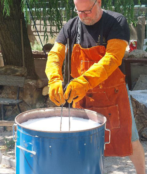 Sie bauen unter Anleitung Ihren eigenen Rakuofen (100 Liter, Außendurchmesser: Ø 58 cm, Höhe 60 cm, 5 cm dicke Isoliermatte) aus einer recycelten Tonne*. Arbeiten mit einer maximalen Breite und Höhe von 40x40 cm können hiermit gebrannt werden. Werderkeramik gibt Tipps zu Materialbeschaffung, Brenn- und Messtechnik. Im Preis sind enthalten: ein Ofen, Ofenplatten und Ofenstützen sowie eine 2-stündige Einführung und ein Brand (nach Absprache).